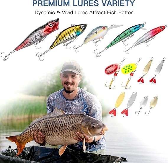 - 【Perfect Gift for Anglers】Whether it’s for Father’s Day, Christmas, or a birthday, this Fishing Lures Kit makes an excellent gift for any fishing enthusiast. With its wide range of baits and accessories, it’s suitable for all skill levels and fishing scenarios, ensuring hours of fun and success on the water